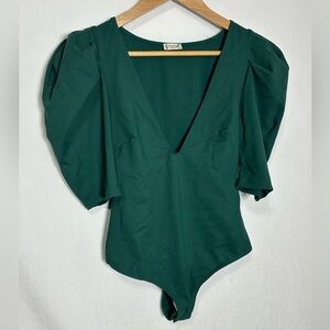 The definition of girly! Exaggerated puff sleeves and deep v-neck will enhance your silhouette.