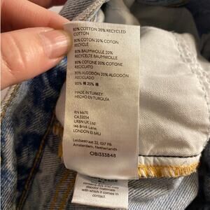 Effortlessly cool, these Free People We The Free distressed straight leg jeans feature a light wash with raw hems and heavy distressing at the knees for a vintage-inspired look. Crafted with 20% recycled cotton, they’re eco-friendly and built for casual streetwear vibes. Perfect for pairing with crop tops, oversized sweaters, or sneakers.