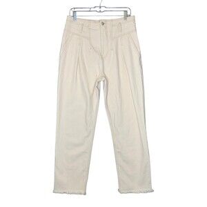 Keywords: Free People jeans, We The Free pants, cream denim, women’s straight leg jeans, boho chic denim, frayed hem jeans, high waist cotton jeans