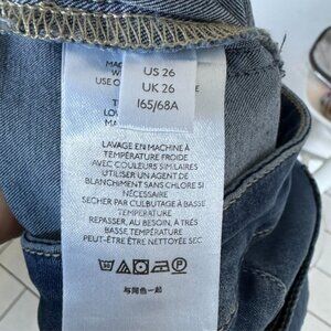 These jeans feature a dramatic bell bottom silhouette with a raw unfinished hem, a flattering high rise, and a stretch blend for comfort.