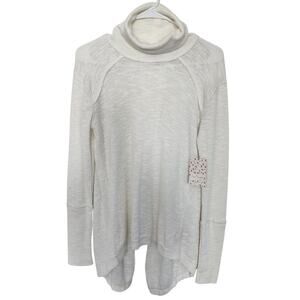Free People We The Free Knit Pullover XS Split Back Ivory Beach Cozy Oversized.