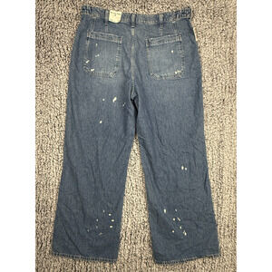 The Free People We The Free Palmer Cuffed Jeans in women's size 32 are a stylish addition to any wardrobe. These boho-inspired jeans feature a paint splatter design, giving them a unique and trendy look. Made of cotton denim with a high rise, these relaxed fit jeans are machine washable and perfect for all seasons. With a button closure and 5-pocket design, these jeans offer both comfort and style for any casual outfit.