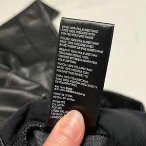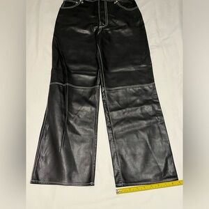 We The Free black vegan leather pants with white contrast stitching. Measures approximately 14 inches across waist, 12 inch rise, and 27 inch inseam. Has a hidden button fly. New with tags, just has some wrinkles from storage.