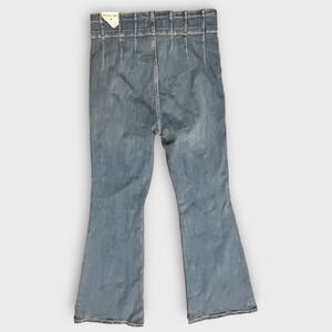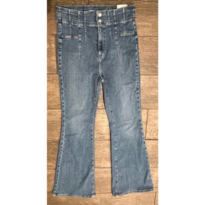 Retro-inspired flares and flattering pleats add dimension to a pair of scene-stealing jeans finished with a high rise and a hint of stretch.