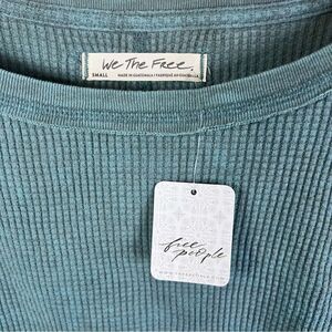 NWT Free People We the Free Microphone Drop Casual Thermal Top Size Small Blue Green Thumbholes