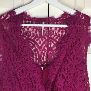 Beautiful Free People Women’s Heart In Two Lace Mini Dress Bright Orchid