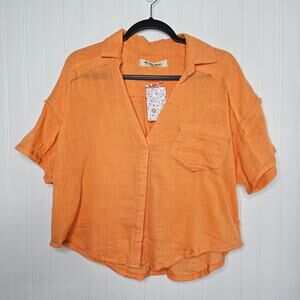 Free People Womens Orange Full of Light Top Sz Small Boho Oversized Flowy Cotton