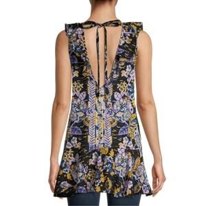 Free People Women’s Summer In Tulum Purple Black Floral Linen Sleeveless Tunic S