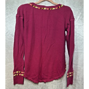 Free People Womens Sz S Embroidered Thermal Henley Top Waffle Knit Top Rainbow