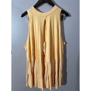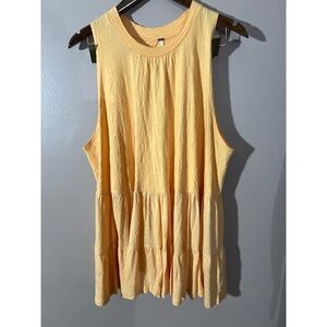 Elevate your style with the Free People Yellow Pleated Sleeveless Tank Top, featuring a relaxed fit and pleated design for a chic, effortless look. This vibrant yellow top is perfect for sunny days, offering a lightweight feel and a comfortable, flowy silhouette. Ideal for casual outings, it combines style and comfort seamlessly. Pit to pit 27” length 31”