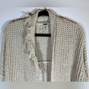 Free People cream open knit boho fringe open sweater cardigan sz S western