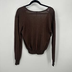 Free People linen long sleeve blouse size XS deep V shiny brown sexy going out