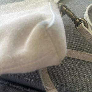 So cool crossbody with an edgy touch, featured in a soft suede fabrication with a spacious interior pocket and chunky chain-link detailing.