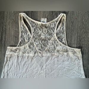 Printed crinkly gauze trapeze cut cami with a romantic lace racerback, hem, and neckline. Racerback. Machine wash cold.