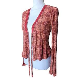 Free people Kaleidoscope top XS extra small bell sleeve tie boho drape blouse