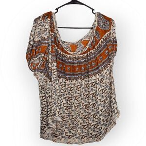 Free People Paisley and Floral Top in Ivory Combo size Large