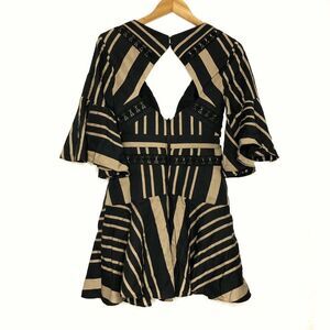 Fit and flare mini dress from Acler featured in a bronze stripe pattern with edgy hook-and-eye trim.
