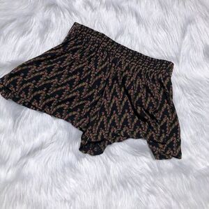 Free People floral zigzag wave shorts size x-small. Black with pink and green floral design. Pull on with elasticized waistband. Free flowing and lightweight. 100% rayon and front pockets. No holes or stains. Super cute and comfortable!