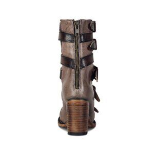 Freebird Steven Bond Stone Leather Distressed Strappy Edgy Buckles Ankle Chunky
