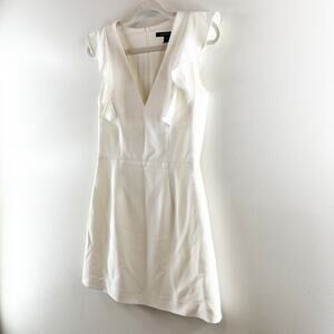 French Connection Whisper Ruffle V Neck Mini Dress White 6