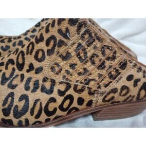 Frye Calf Fur Mule Shoe Sz 7 M Pointed Toe Leather Heels Cheetah Leopard nice