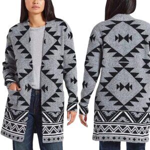Frye Southwestern Jacquard Open Front Cardigan with Pockets Gray Black S