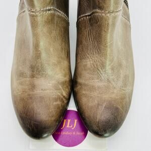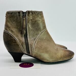 Frye Women's Steffi Zip Distressed Taupe Leather Ankle Booties Size 6
