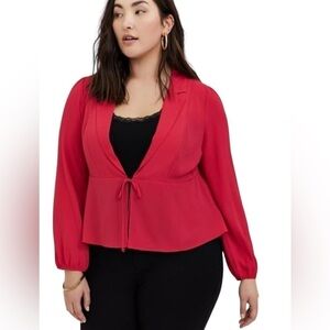 Fuchsia Pink Crepe Tie Front Peplum Jacket, size 5 lightweight, Barbie core