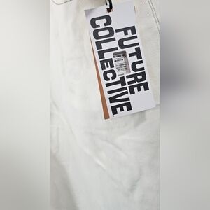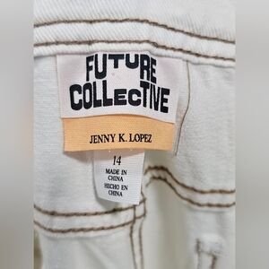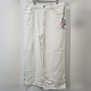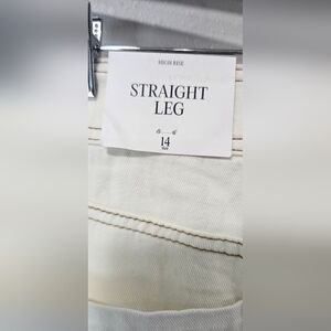Future Collective Women's High Rise Straight Leg Raw Hem Cream Jeans Size 14 NWT