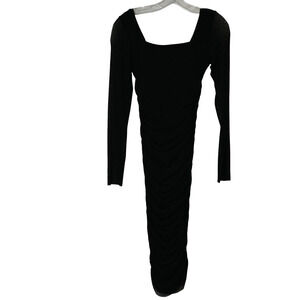 Fuzzi Ruched Bodycon Dress Size M Medium Black Long Sleeve Square Neck Mesh
