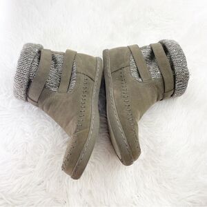 -green/grey faux suede outer with knit upper.