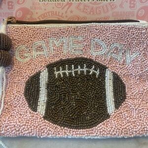 GAME DAY FOOTBALL BEADED POUCH! Zipper tassel pull!!! Absolutely adorable for the football season!! Quality!!! New