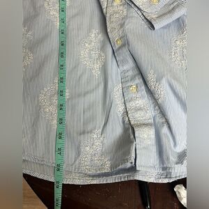 White blue stripe shirt with paisley embroidered. Lightweight. 100 % cotton. Classic Fit Long Sleeve.