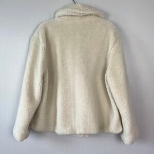 GAP Sherpa Jacket Coat Birch Off White Double Breasted Faux Fur Size Large