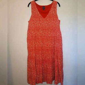 GAP burnt orange and white cotton V-neck tiered sleeveless Midi Dress, size L