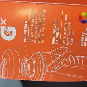 New Gatorade jug.  Insulated with pod piercer. Has name plate and hook to hang on a fence.