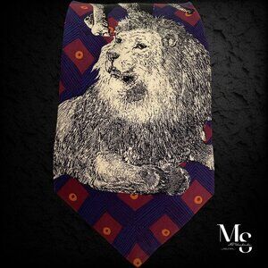 GIANFRANCO FERRE Blue & Gray Animal Print Silk Tie Made In Italy W:4" EX COND