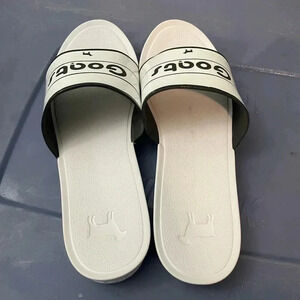 GOATS women’s size 8 The Slide white/Black Logo Slide Sandals
