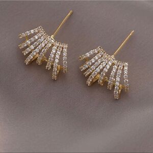 Minimalist goldtone fashion earrings with zircon crystal detail