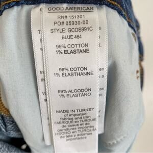 Good American shorts, tummy control denim, sculpting cutoff shorts, body-contouring high-rise, flattering summer staple, casual core outfit, capsule wardrobe denim, travel-friendly shorts, minimalist core essential, street style basics, off-duty model look, everyday stretch denim shorts.