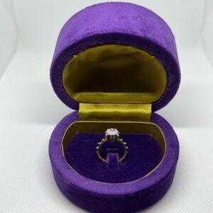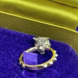 GUCCI 18k 3 diamonds pink opal real diamonds 3 jaguar head 100% real