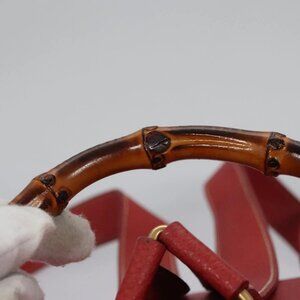 GUCCI Bamboo Backpack Suede Leather Red Gold
