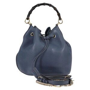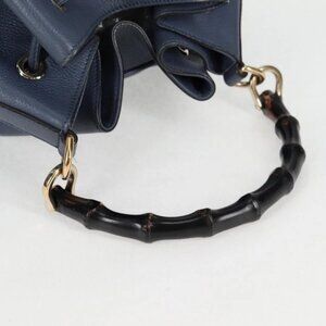 GUCCI Bamboo Hand Bag Leather 2way Blue Gold