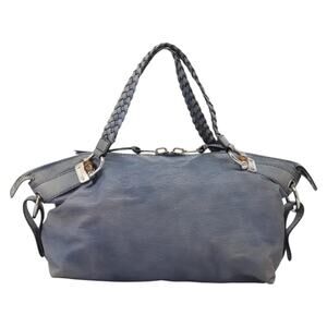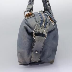 GUCCI Bamboo Tote Bag Leather Blue Silver