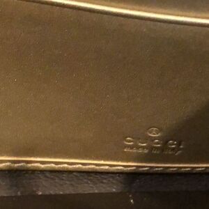 Cobbler Repaired The Two-Tone Leather By Restoring The Exterior Leather Trim by Color Matching The Original Silver and Gold Pearlescent Leather On The Front & Rear Covers and The Interior Flap. The GUCCI Code was Left Alone.