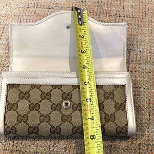GUCCI Tan Canvas GG Full Length Wallet with Silver & Gold Leather Trim