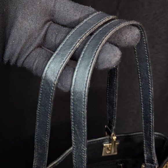 Authentic GUCCI small / mini tote in GG Canvas, dark leather, cold tone squared handle reinforcements, leather handles. Black interior with zippered pocket. Vintage Tom Ford era small tote, cute daily companion that holds your phone, wallet, and all your other small essentials. Vintage preloved Gucci bag with wear, abrasion, scuffing - see all photos for details.
