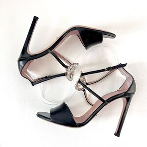 GUCCI || GG Crystal Embellished Black Leather High Heel Strappy Sandal US 8