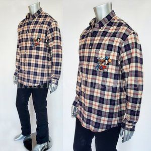 GUCCI SHIRT MENS CHECK EMBROIDERED x DISNEY DONALD DUCK COTTON LINEN sz 50 / L