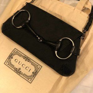 GUCCI Vintage Black Monogram Horse Bit Clutch